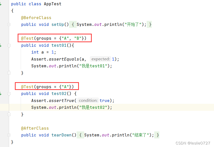 而且可以在测试类和测试方法上同时使用@Test,比如给某个Test加入分组: