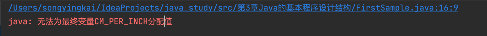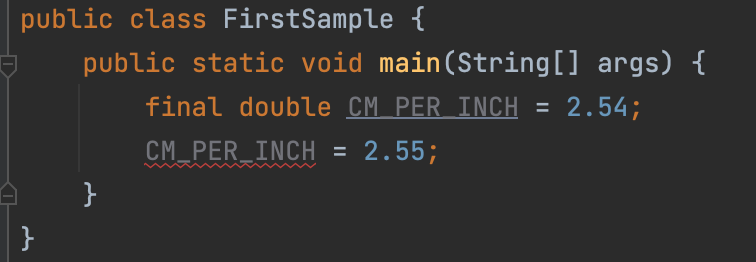 关键字final表示这个变量只能被赋值1次。一旦被赋值之后,就不能修改了。习惯上,常量名使用全大写。