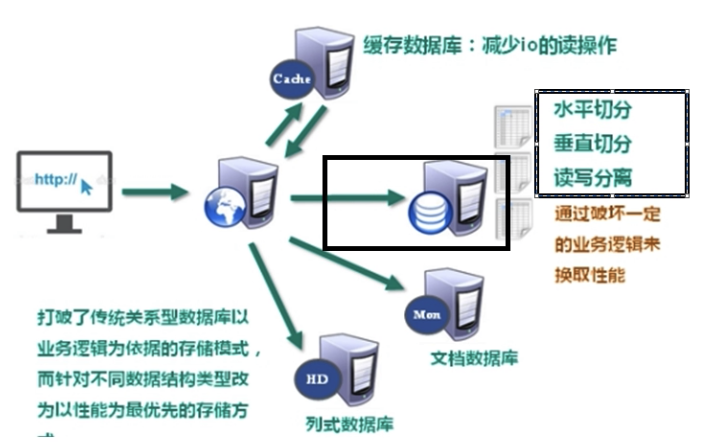 在Web1.0时代,数据访问量很有限,用一夫当关的高性能的单点服务器可以解决大部分问题。