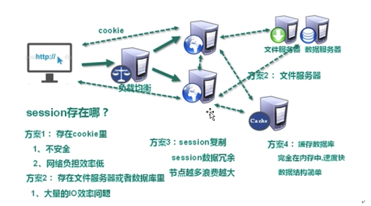 session复制,用户一开始访问,服务器A存储了用户的信息,第二次用户访问的时候,请求走向了服务器B,但此时session在服务器A上,所以就将session复制一份给服务器B即可