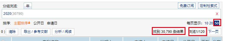 这里要讲解一下,一个页面最多50条数据,最多120页,所以我们要想获取全部的数据,就要对专利类型进行帅选(尽量细分),这样根据日期和专利类型搜索,大部分数据都能获取到。