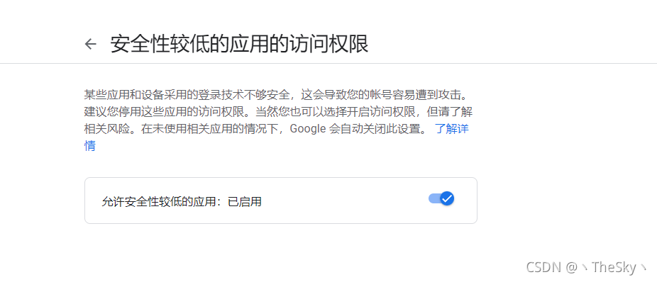 访问 URL:https://www.google.com/settings/security/lesssecureapps