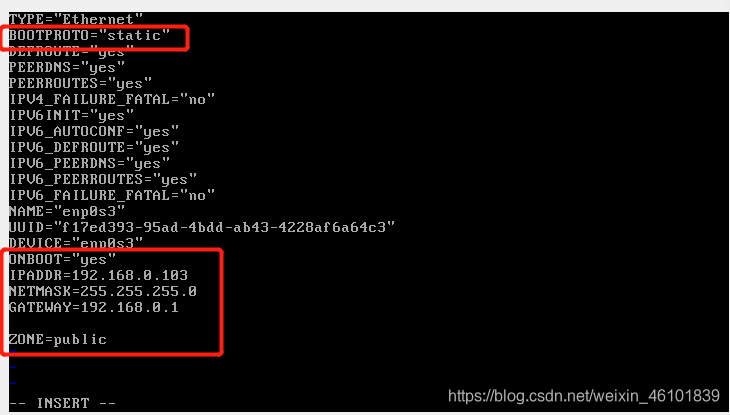 IPADDR=“192.168.0.103” # 设置的静态IP地址
