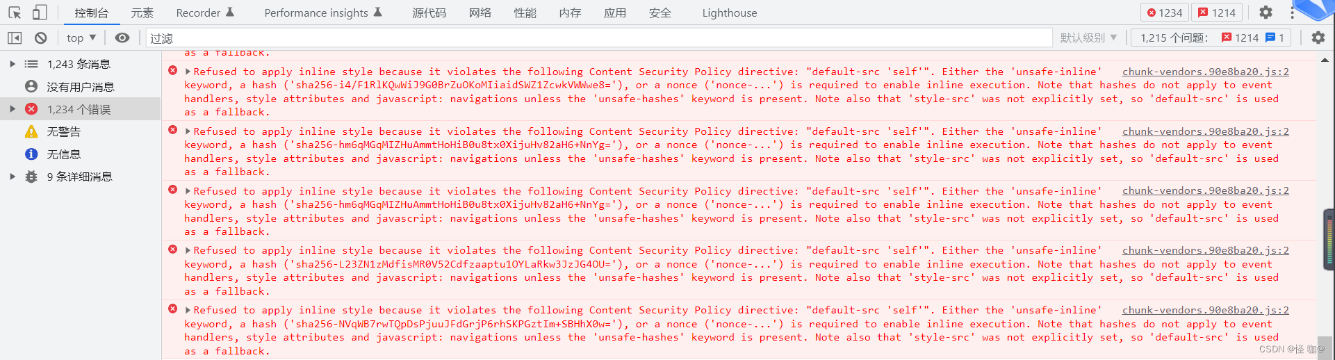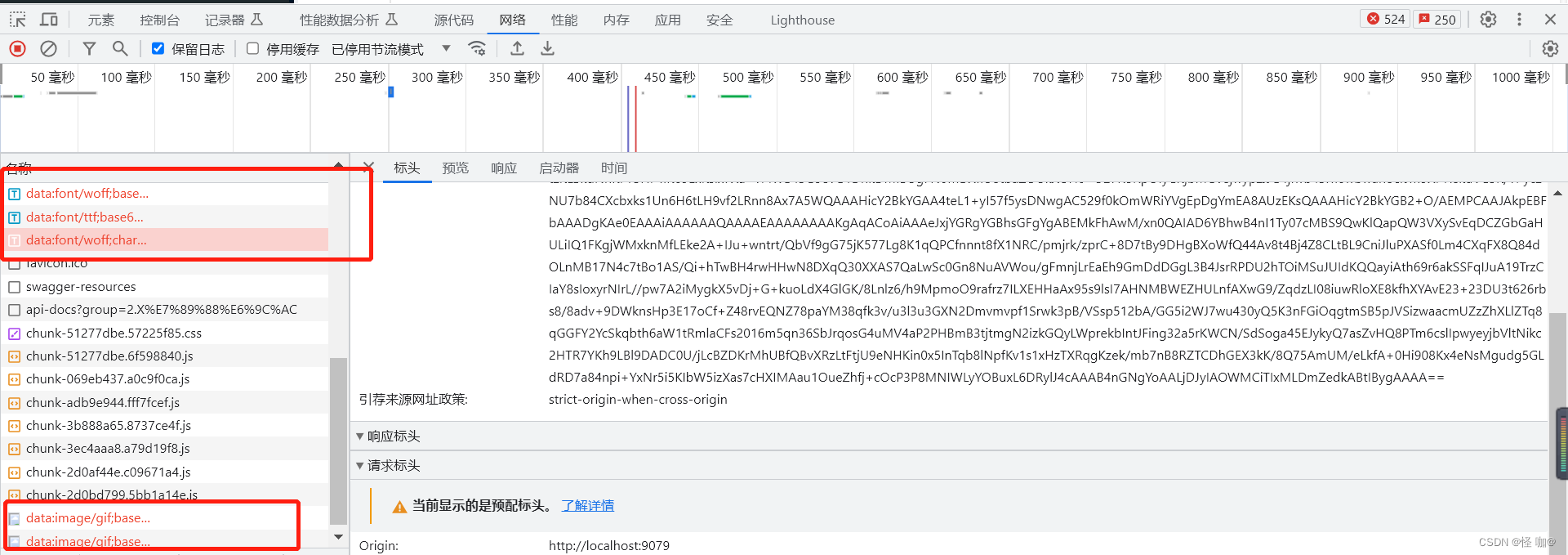 查看F12发现别的项目访问接口文档并没有这些错误,而这个项目全是以下错误信息: