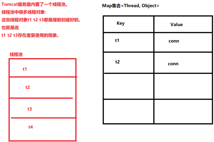 // 根本原因是:Tomcat服务器是支持线程池的。也就是说一个人用过了t1线程,t1线程还有可能被其他用户使用。