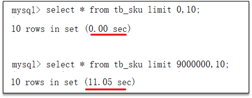 因为,当在进行分页查询时,如果执行 limit 9000000,10 ,此时需要MySQL排序前9000010 记录,仅仅返回 9000000 - 9000010 的记录,其他记录丢弃,查询排序的代价非常大。