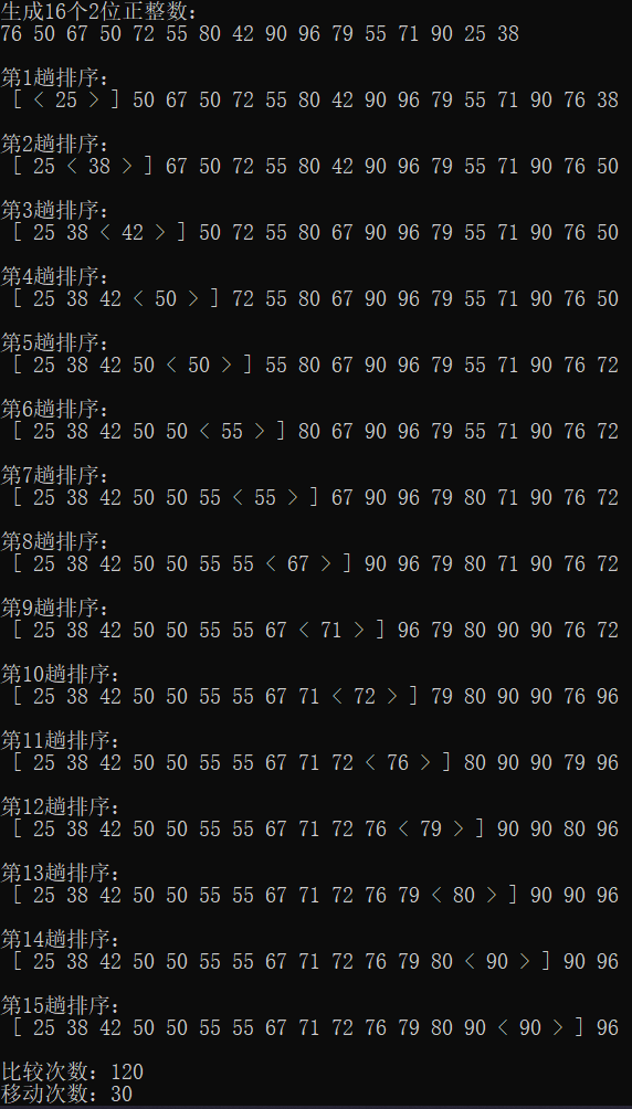 用随机函数生成16个2位正整数(10~99),利用 简单选择排序法 将其排序。