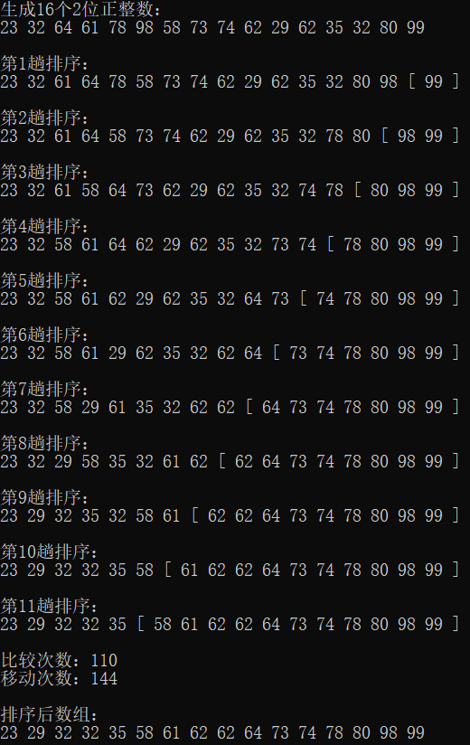 用随机函数生成16个2位正整数(10~99),利用 冒泡排序法 将其排序。