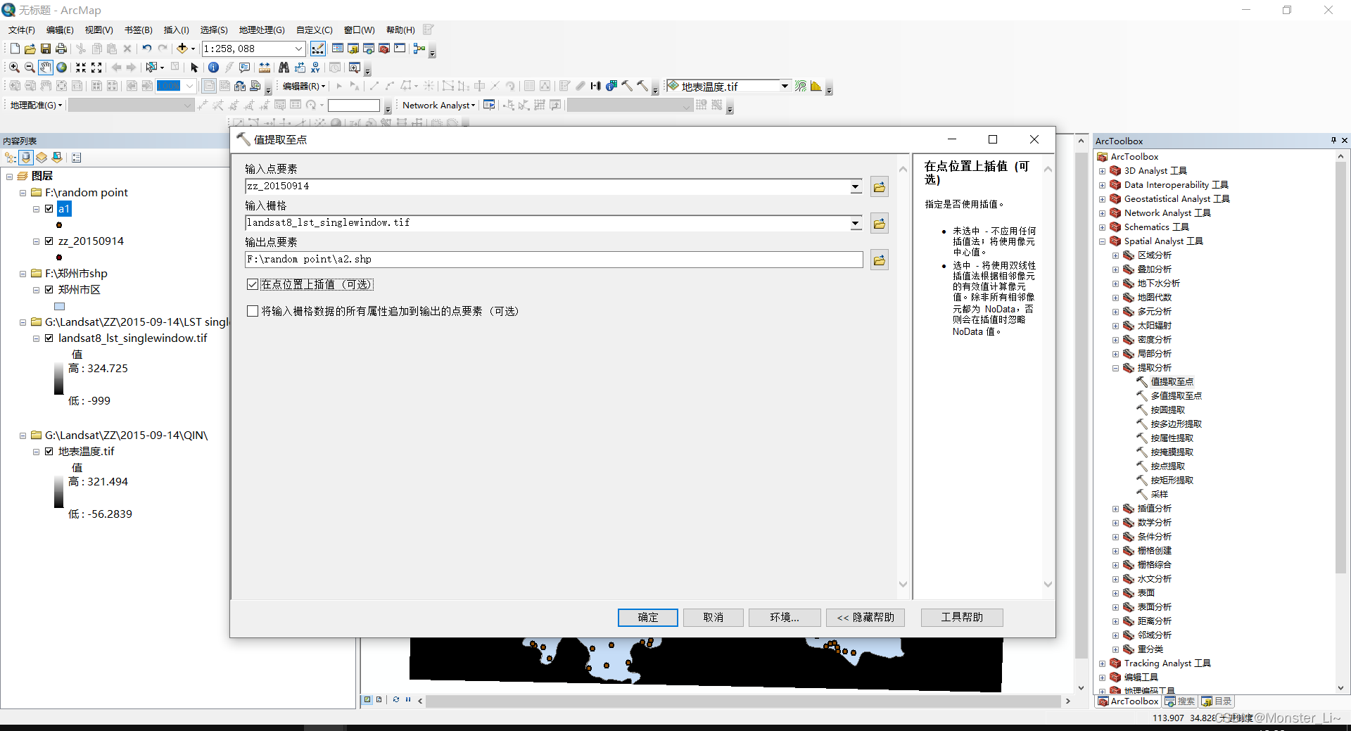 本文介绍了如何使用已验证的卫星数据进行地表温度反演结果的交叉检验,通过地理坐标、时间及观测角度匹配,对不同方法计算的地表温度进行采样和相关性分析,以评估其准确性。主要步骤包括导入边界、生成随机点、采样、Excel转换及异常点删除,最后通过散点图进行相关性分析。