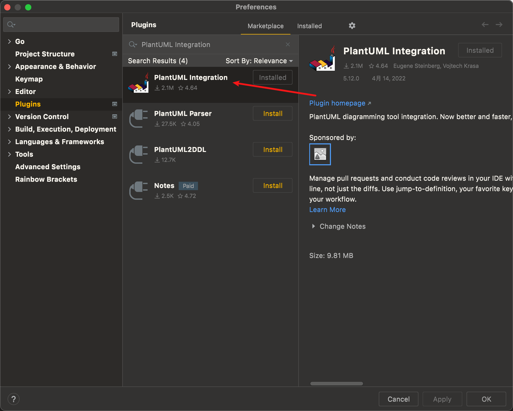 安装插件PlantUML Integration