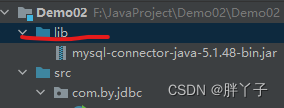 2.在idea项目下创建lib文件夹存放mysq-connector-java-5.1.48-bin.jar驱动包,如下图: