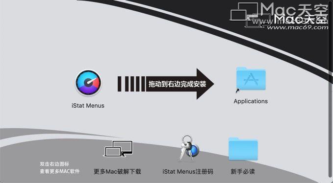 下载软件完成后,打开软件包,拖动软件【iStat Menus】到应用程序进行安装.