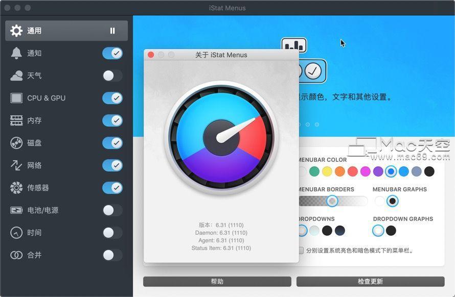 iStat Menus是一款常驻菜单栏右侧的系统监控小工具,我们可以时刻了解自己 Mac 电脑上发生各种情况。istat menus for mac特别版能够帮助您实时查看所有硬件信息,非常的直观便于查看,实时网速、CPU温度、内存以及硬盘各方面实现全面监控。istat menus 6 mac特别版让您对电脑运行使用情况了如指掌,真的是人人可用的电脑硬件监测神器。