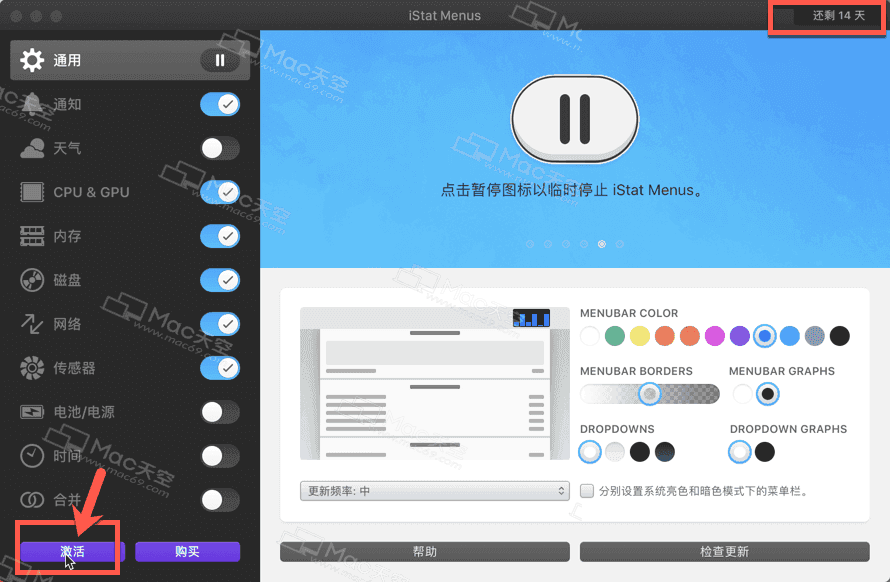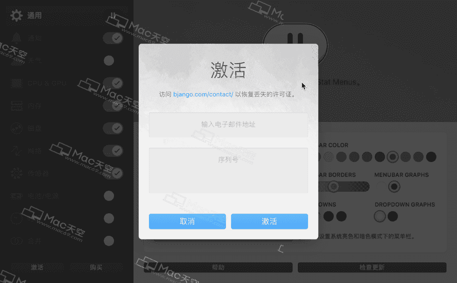 把iStat Menus序列号和注册邮箱输入到注册页面,然后点击激活,如图,然后iStat Menus for Mac注册成功啦,尽情使用吧。