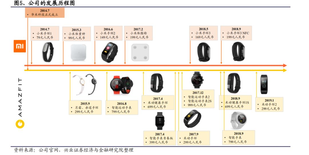 华米科技是小米生态链投资企业之一,由创始人兼CEO黄汪和小米集团于2013年共同创立,截止 2018 年 12 月 31 日,公司实控人兼董事长黄汪直接持股 36.05%,小米通过 People Better Limited、顺为资本间接持股 31.06%。双方签订了商业合作协议和战略合作协议,协议到 2020 年到期。所以目前它的成长和小米深度捆绑,公司主要为小米可穿戴产品供货,并有直营品牌Amazfit。