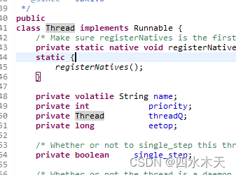 查看源码,可以看到Thread 是个普通类,说明可以直接new出来,但是直接new的话run方法没重写,没啥用,所以需要个继承的