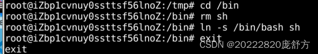2. 将/bin/sh重新指向/bin/bash(或/bin/dash),观察能否攻击成功,能否获得 root 权限。