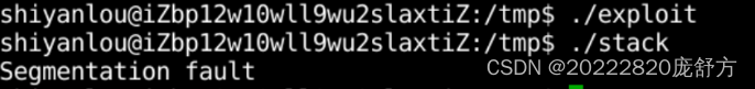 先运行攻击程序 exploit,再运行漏洞程序 stack,观察结果: