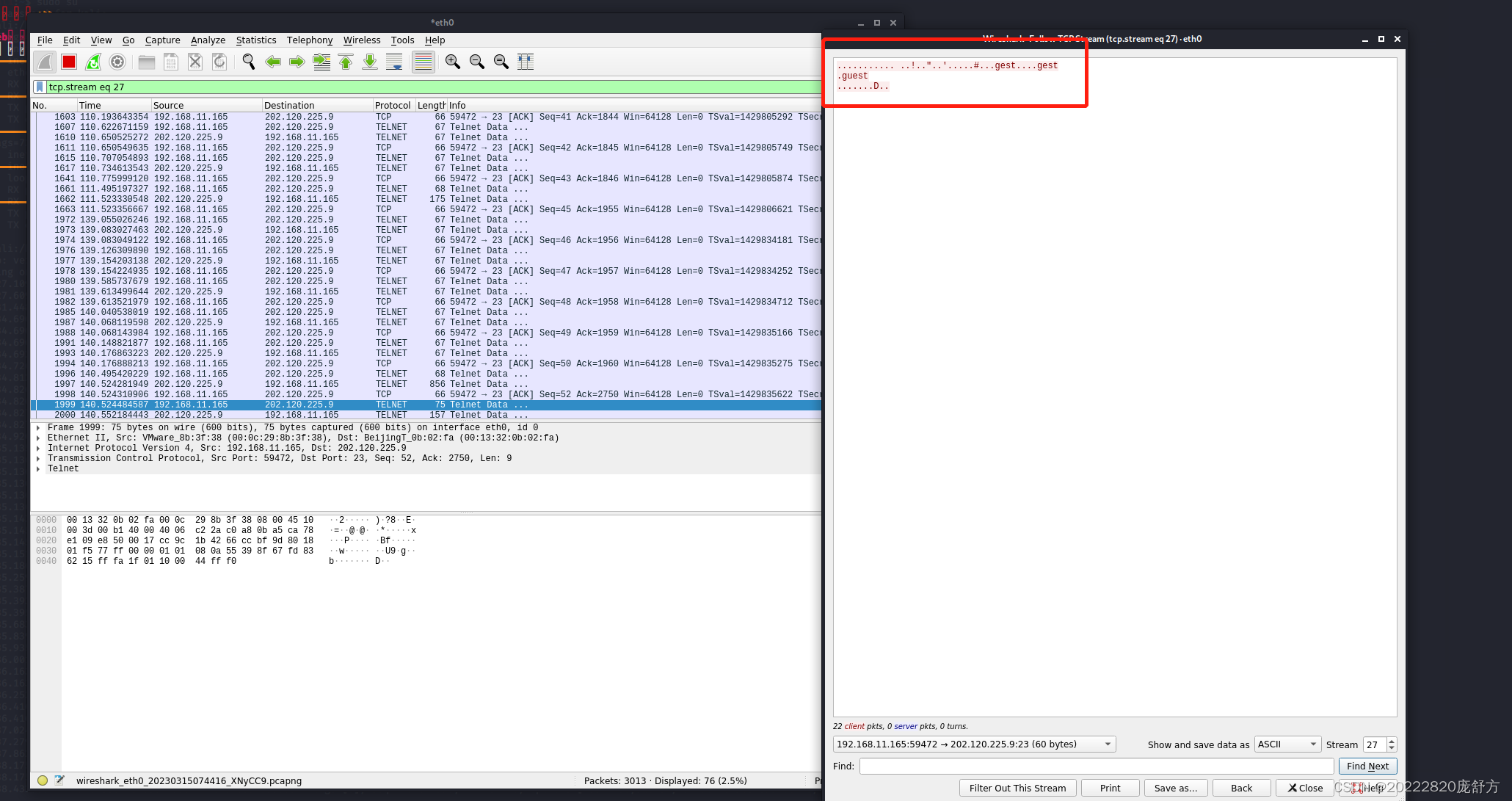 该文详述了使用tcpdump和Wireshark对网络流量进行嗅探和协议分析的过程,包括访问网站时的服务器交互、TELNET登录BBS的明文传输,以及利用snort和p0f进行网络扫描的取证分析。文章还讨论了遇到的问题,如安装snort时的源更换,并揭示了攻击主机和目标IP的识别方法。