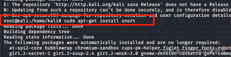 安装snort时花费了较多时间,因为插入了新的源但是没有把旧源替换掉,重新安装两次安装成功。