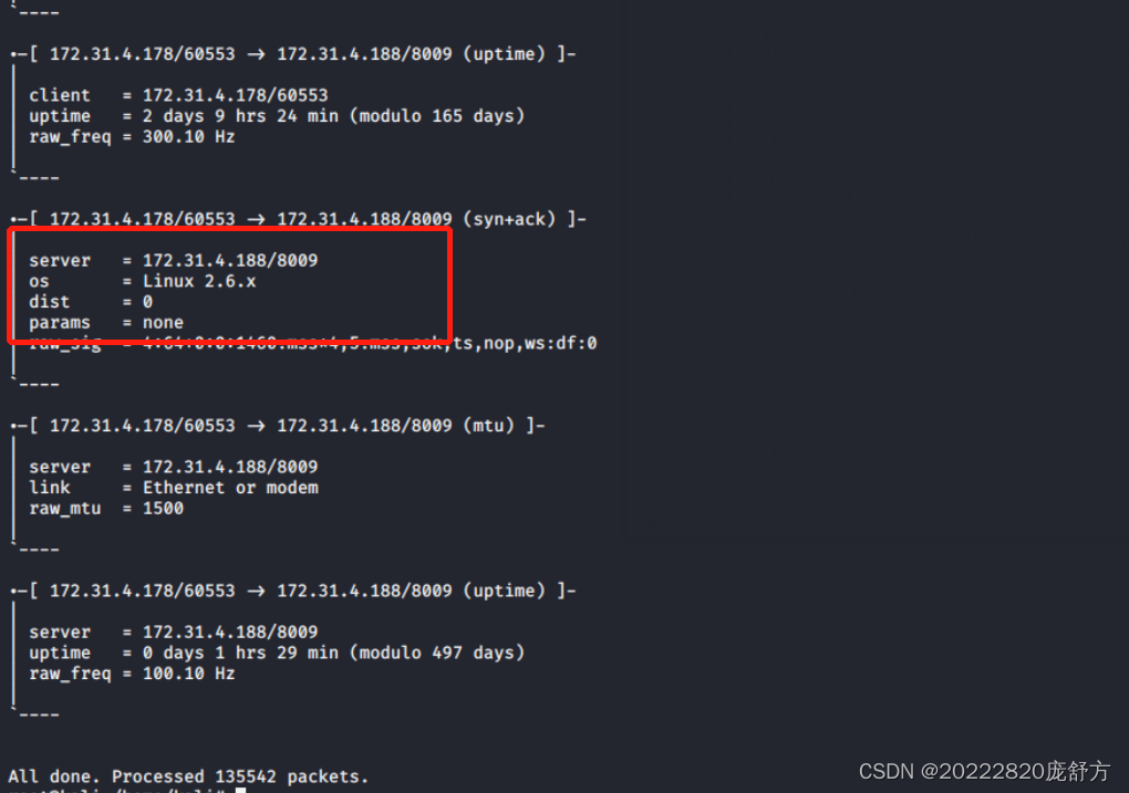 使用如下命令可得到如下结果,攻击主机的操作系统是2.6.x