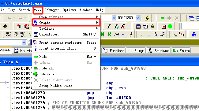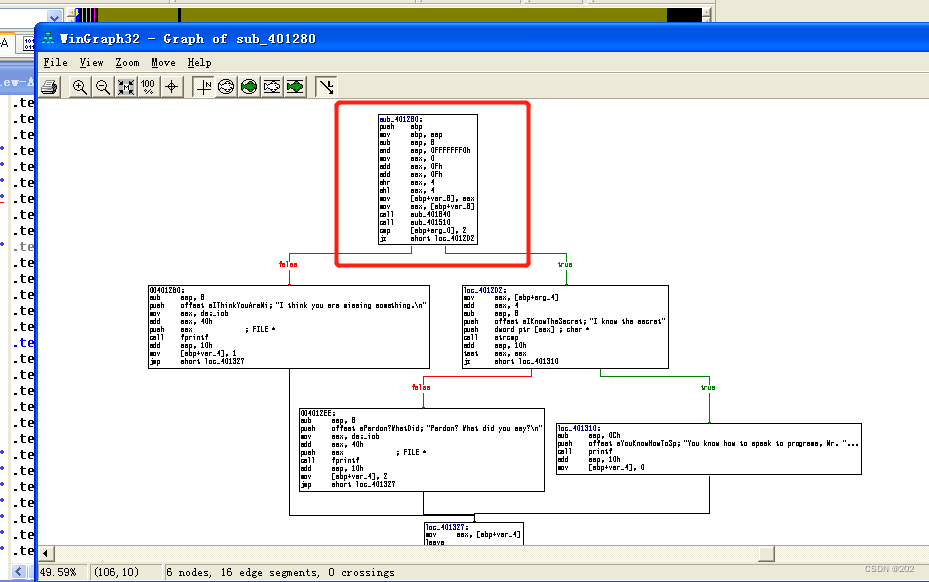 view中打开flow chart,可以找到sub_401280函数,放大后看汇编代码