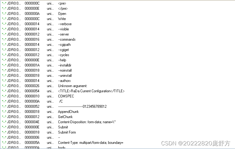 (3)使用字符串提取工具,对脱壳后的rada恶意代码样本进行分析,从中发现rada恶意代码的编写作者是谁?