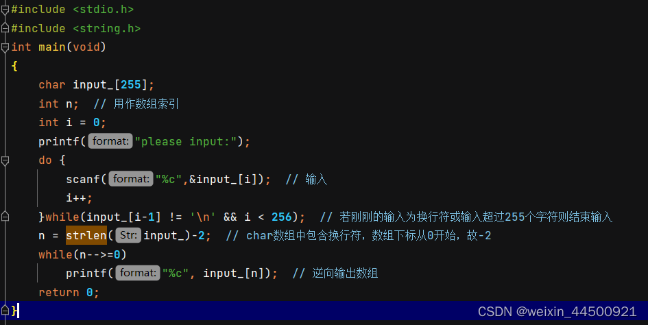 编写一个程序读入一行输入,然后反向打印该行。您可以把输入存储在一个char数组中;假定该行不超过255个字符