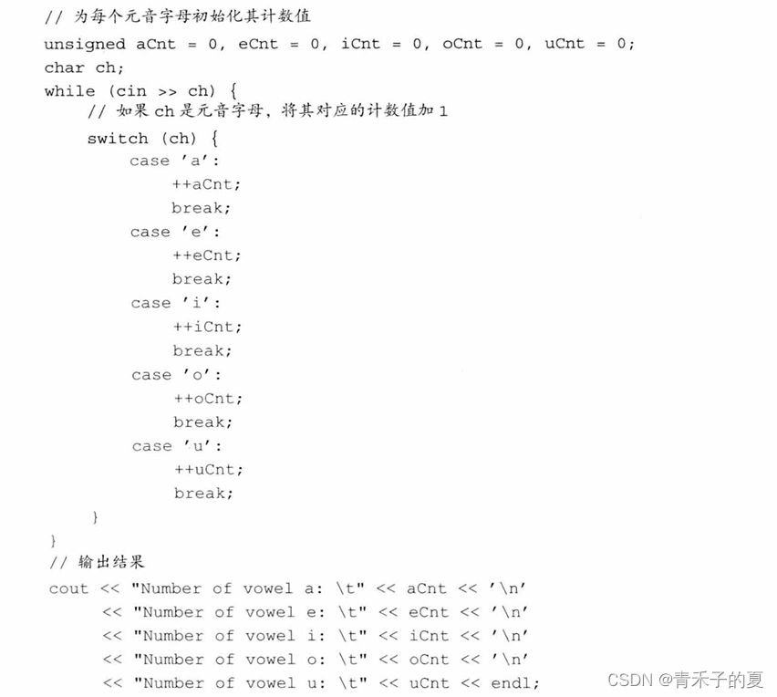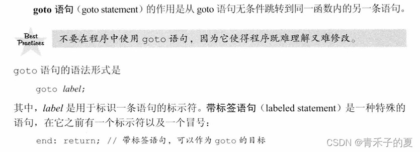 如果在程序的某个地方,语法上需要一条语句但是逻辑上不需要,此时应该使用空语句。空语句只含有一个单独的分号: