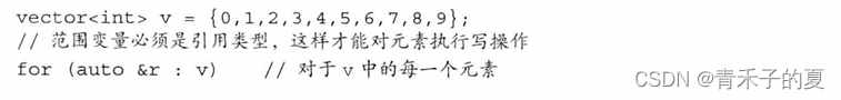 这种语句可以遍历容器或其他序列的所有元素。这些类型的共同特点是拥有能返回迭代器的begin和end成员。