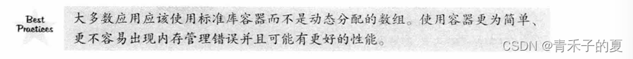 动态数组不是数组类型,因此不能对动态数组调用begin或end,也不能用范围for语句来处理(所谓的)动态数组中的元素。