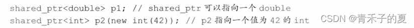 智能指针是模板。当我们创建一个智能指针时,必须提供额外的信息——指针可以指向的类型。和vector一样,我们在尖括号内给出类型,之后是所定义的这种智能指针的名字。默认初始化的智能指针中保存着一个空指针。