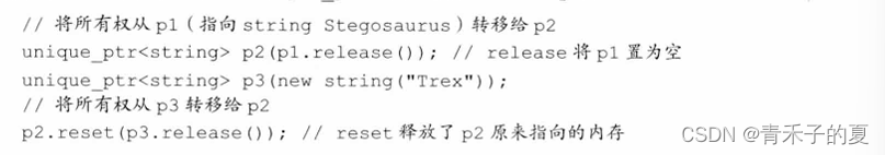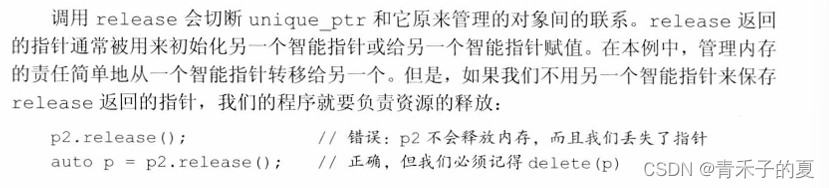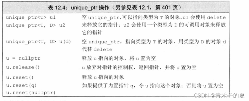 与shared_ptr不同,某个时刻只能有一个unique_ptr指向一个给定对象。当unique_ptr被销毁时,它所指向的对象也被销毁。