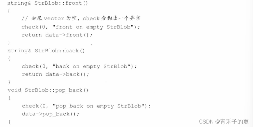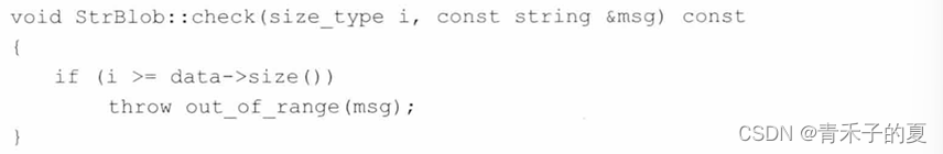 访问元素之前必须检查元素是否存在。check函数检查一个给定索引是否在合法范围内。除了索引,check还接受一个string参数,它会将此参数传递给异常处理程序,这个string描述了错误内容。