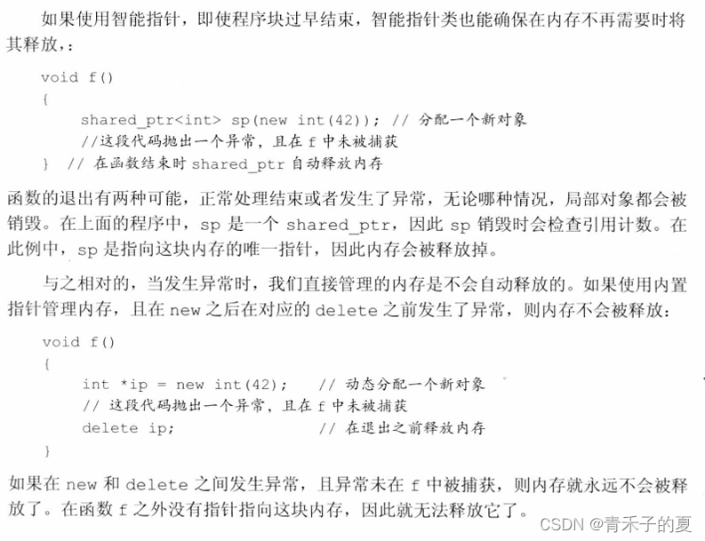 为了更安全地使用动态对象,标准库定义了两个智能指针类型来管理动态内存分配的对象。当一个对象应该被释放时,指向它的智能指针可以确保自动地释放它。