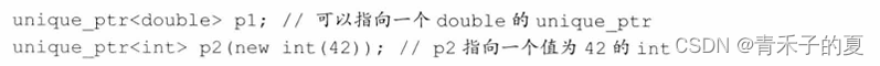 当我们定义一个unique_ptr时,需要将其绑定到一个new返回的指针上。类似shared_ptr,初始化unique_ptr必须采用直接初始化形式: