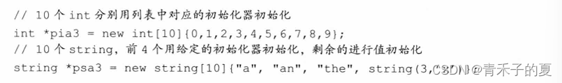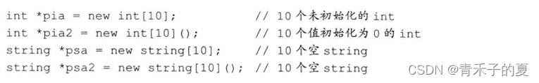 也可以对动态分配的对象进行值初始化,只需在类型名之后跟一对空括号即可: