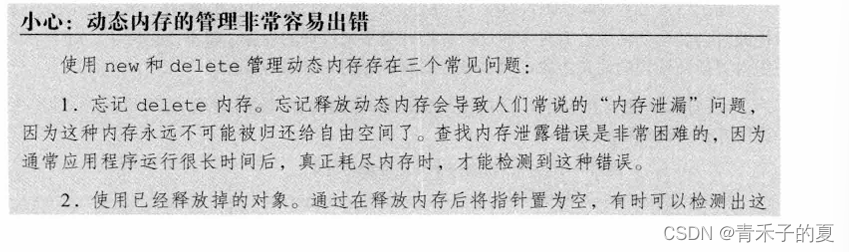 自己直接管理内存的类与使用智能指针的类不同,它们不能依赖于类对象拷贝、赋值和销毁操作的任何默认定义。