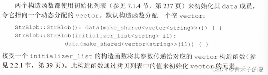 我们使用vector来保存元素。将vector保存在动态内存中,为每个StrBlob设置一个shared_ptr来管理动态分配的vector。此shared_ptr的成员将记录有多少个StrBlob共享相同的vector,并在vector的最后一个使用者销毁时释放vector。