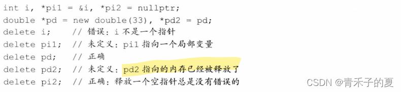 释放一块非new分配的内存,或者将相同的指针值释放多次,其行为是未定义的。