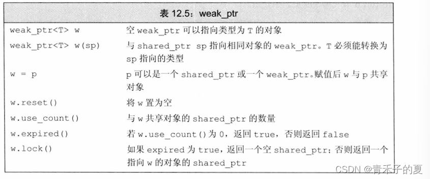 weak_ptr是一种不控制所指向对象生存期的智能指针,它指向由一个shared_ptr管理的对象。将一个weak_ptr绑定到一个shared_ptr不会改变shared_ptr的引用计数。