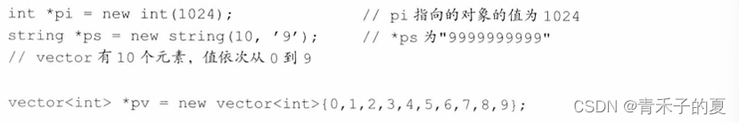 我们可以使用直接初始化方式来初始化一个动态分配的对象。