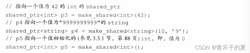 make_shared用其参数来构造给定类型的对象。传递的参数必须与该类型的某个构造函数相匹配。如果我们不传递任何参数,对象就会进行值初始化。