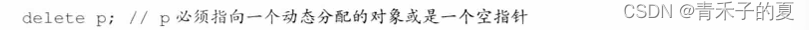 delete表达式执行两个动作:销毁给定的指针所指向的对象;释放对应的内存。