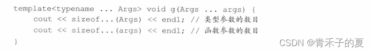 当我们需要知道包中有多少元素时,可以使用sizeof...运算符。类似sizeof,sizeof...也返回一个常量表达式,而且不会对其实参求值。
