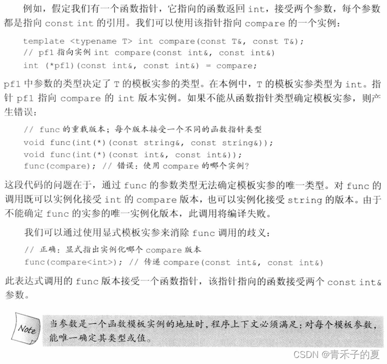当我们用一个函数模板初始化一个函数指针或为一个函数指针赋值时,编译器使用指针的类型来推断模板实参。