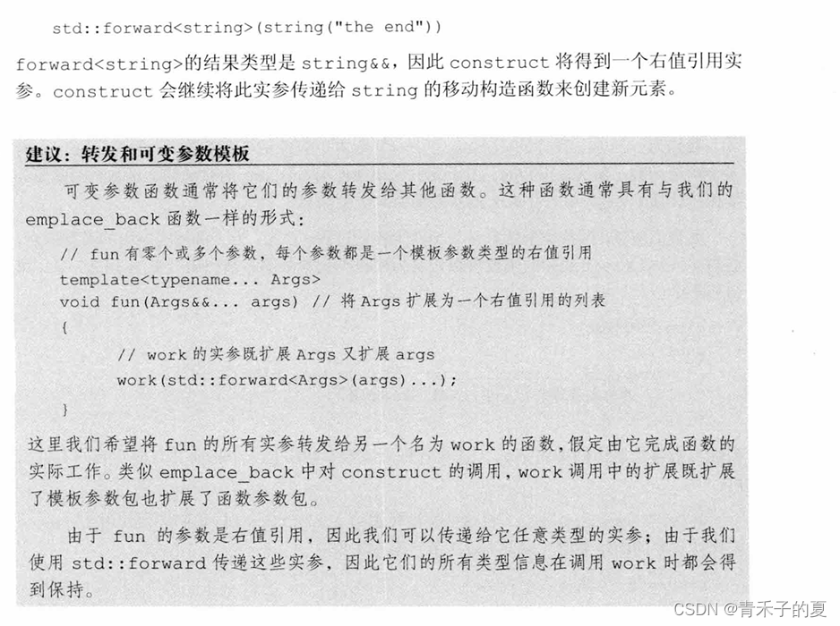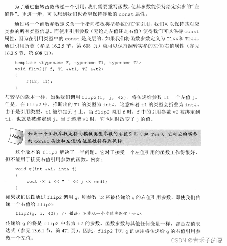 某些函数需要将其一个或多个实参连同类型不变地转发给其他函数。在此情况下,我们需要保持被转发实参的所有性质,包括实参类型是否是const的以及实参是左值还是右值。