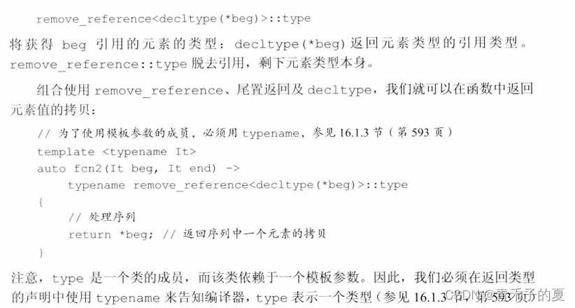 如果不可能(或者不必要)转换模板参数,则type成员就是模板参数类型本身。例如,如果T是一个指针类型,则remove_pointer<T>::type是T指向的类型。如果T不是一个指针,则无须进行任何转换,从而type具有与T相同的类型。