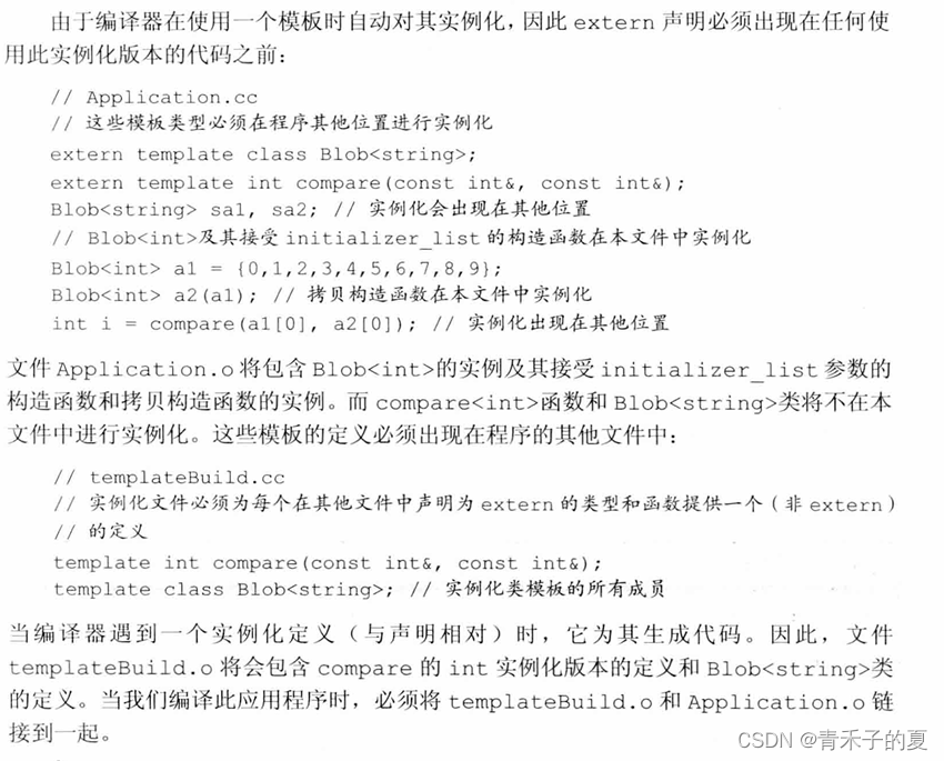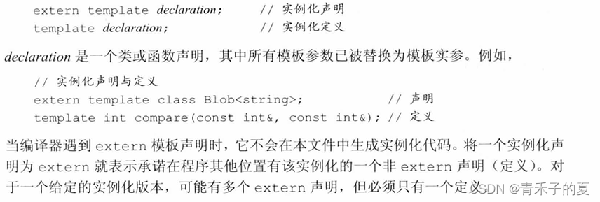 在大系统中,在多个文件中实例化相同模板的额外开销可能非常严重。在新标准中,我们可以通过显式实例化(explicit instantiation)来避免这种开销。一个显式实例化有如下形式: