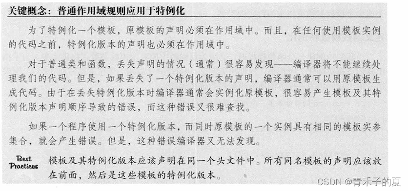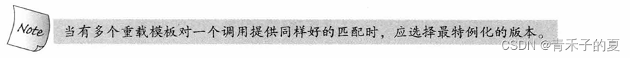 一个特例化版本本质上是一个实例,而非函数名的一个重载版本。特例化不影响函数匹配。